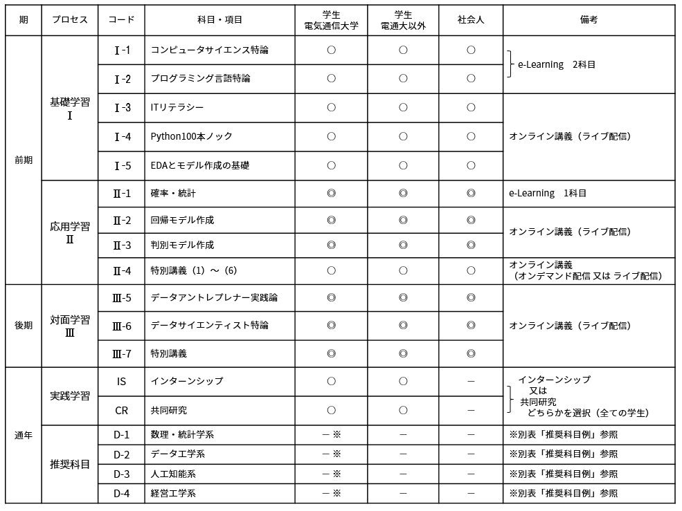 ※別表: 推奨科目例(電気通信大学の学生または単位互換大学の学生を対象)
